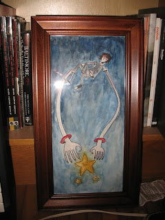 Here's another process picture in the Mario Painting. I added the rest of the colors and started adding in the background. Now I've just got to finish the back ground, and retrace some of the black lines, and I'm done. I should have a finished product soon. And here's a picture of my room and my stuff.